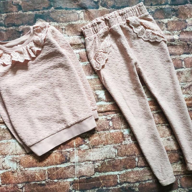Костюмчик 4-5років Кофточка: Дл-41 Рук-36 Плечі-27 Подм-33см Штанці: Дл-62 Крок-40 Пояс-25(гумка) Стегна 32-33см