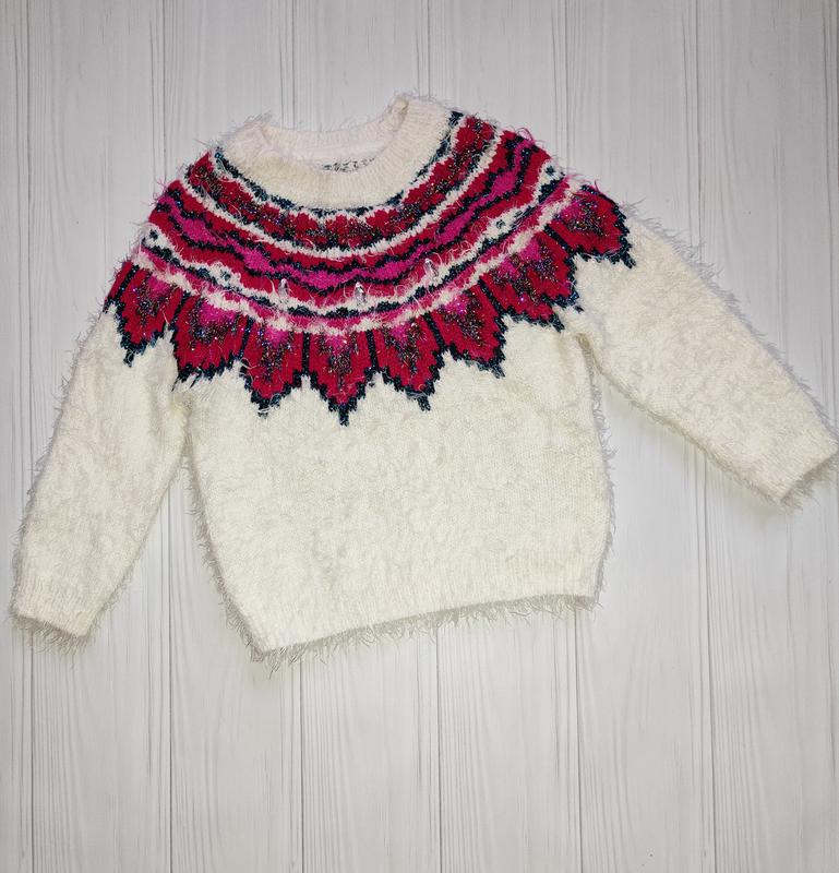 Красивый свитерок на 3-4 года. Длина 38, рукав от шеи 40.