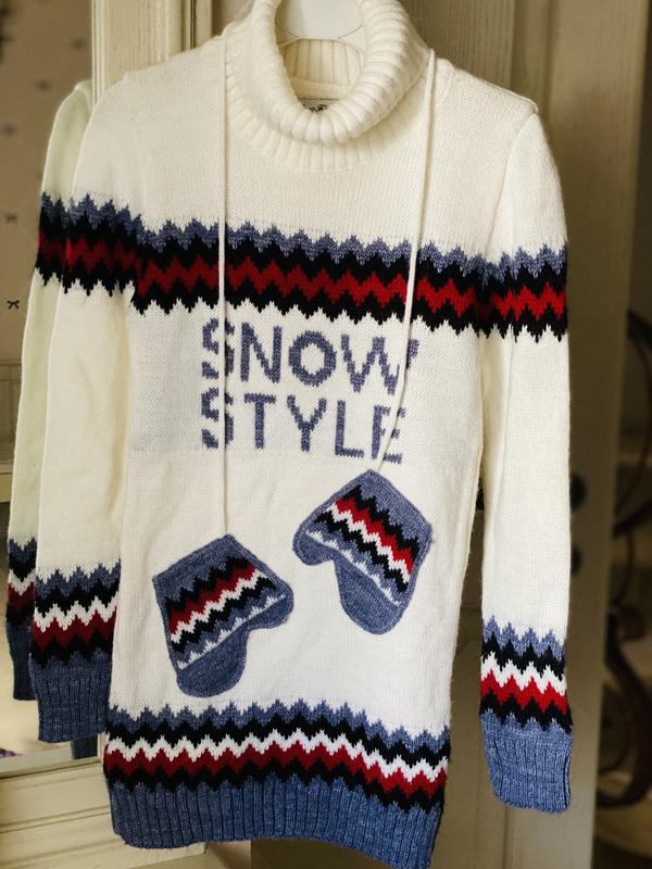 Тёплая ,не колючая туника добротной турецкой фирмы.Подойдёт под плотные колготки,лосины или брюки.Смотрится отлично!Бирка отсутствует,но в составе 30%шерсти.