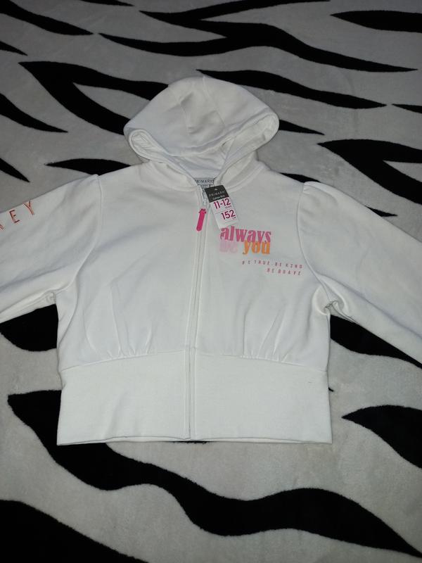 Тёплая укороченая мастерка с качественой нашивкой и накаткой,низ на широком манжете,двойной капюшон.По бирке на 11-12 лет.По факту подойдёт и на 42-44р Цена: 330грн PRIMARK Замеры Плечи 34см ПОГ 45см Манжет 38см Рукав 57/66см Длина 44см