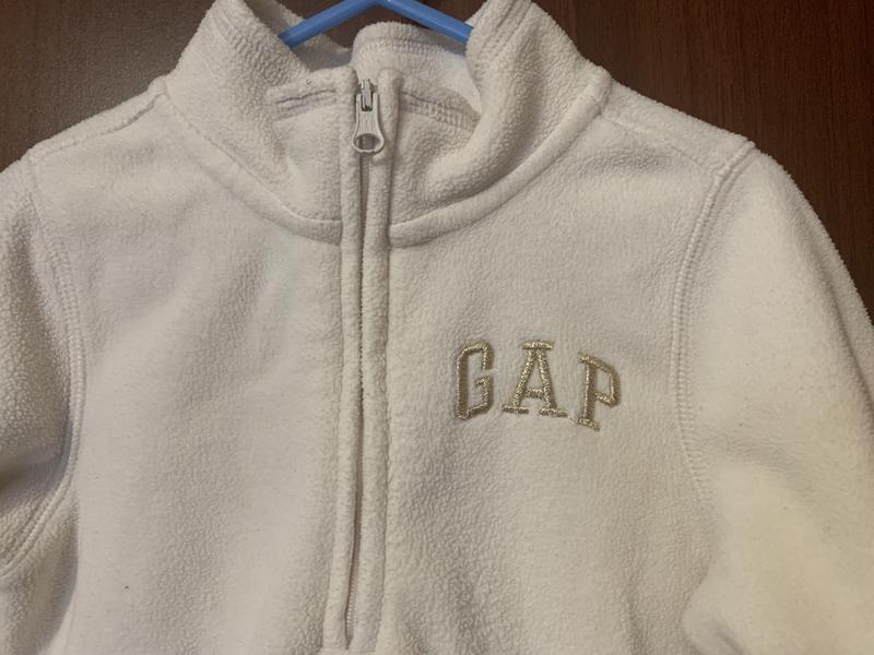 В наявності Молочно білого кольору одна кофтинка фірми Gap, на зріст 110 см, вік 5 років. Плечі 28см Довжина 39див Рукава 39див ПОГ 36 Замочок 19 см, комір стійка.