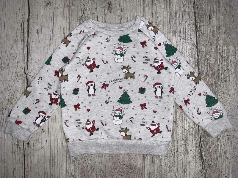 Новорічний світшот на байку р. 18-24 міс. Довжина 36 ПОГ 29 низ 25 Рукав 35 Стан відмінний