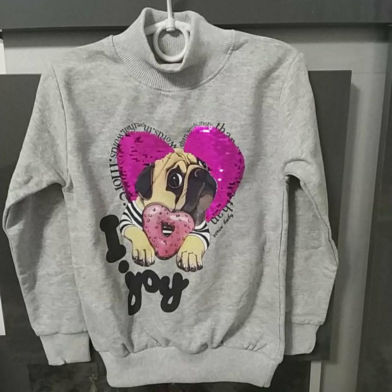 Батник відмінної якості. На флісі, горло стоичка, паєтки змінюються. рукава на манжетах. Розміри - рукав 44 від плеча, внутрішній 36, довжина 45, обсяг 34. Виробництво Туреччина