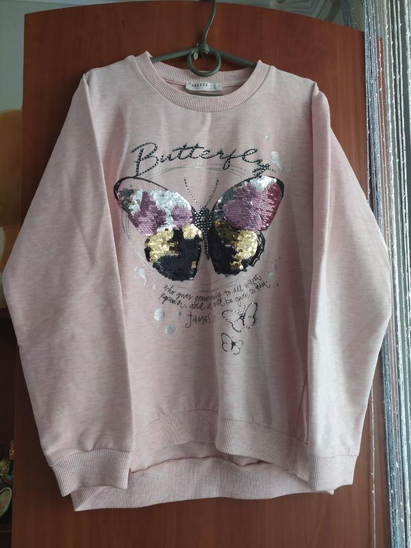 ідеальний стан, перед укорочений, паєтки-перевертиши, дуже гарно грають на світлі. Колір як на першому фото. 95% котон, 5% еластан рукав 48,5 см від паху до паху 43см, довжина спереду 51см, спина 55см