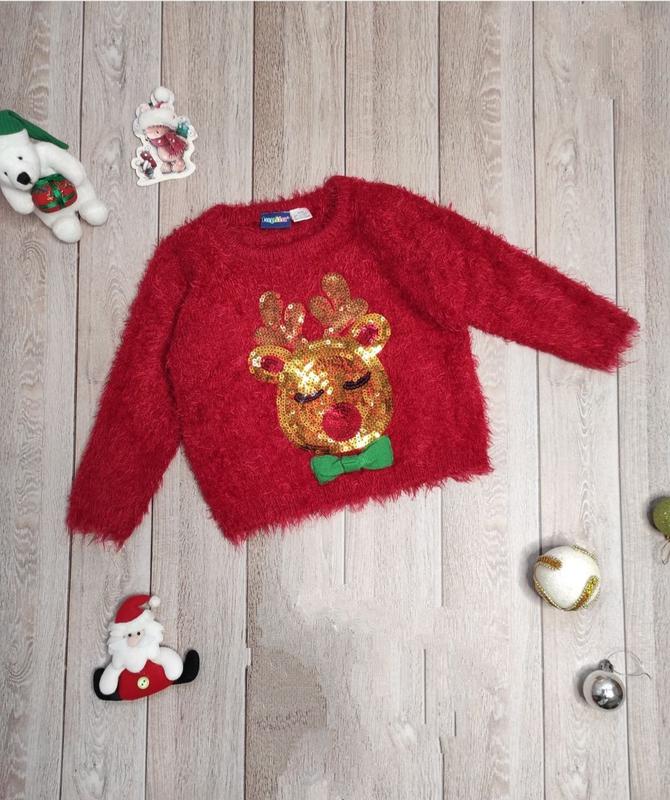 Красивий светр "травичка" з оленем з паєтками на 12-24мес за бирці. Довжина 32, рукав 30