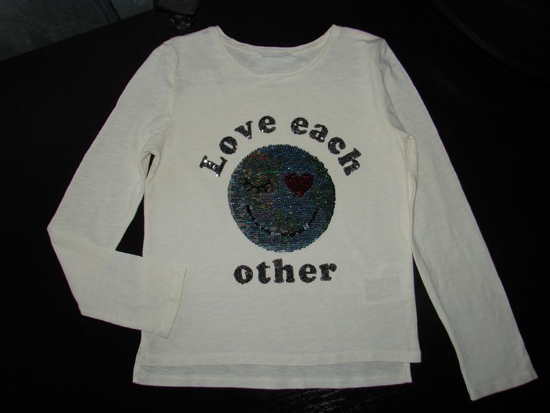 крутой реглан перевёртыш H&M 6-8 лет состояние отличное Длина 48. см,в груди 35 плечи 31 см,рукав 51,5 рисунок с улыбкой тоже очень яркий и красивый,со вспышкой как то тускло вышло. Смотрите все мои объявления!!Очень много фирменных,брендовых вещей в отличнейшем состоянии по очень демократичной цене!!!Читайте отзывы,доверяйте только проверенным продавцам!!!