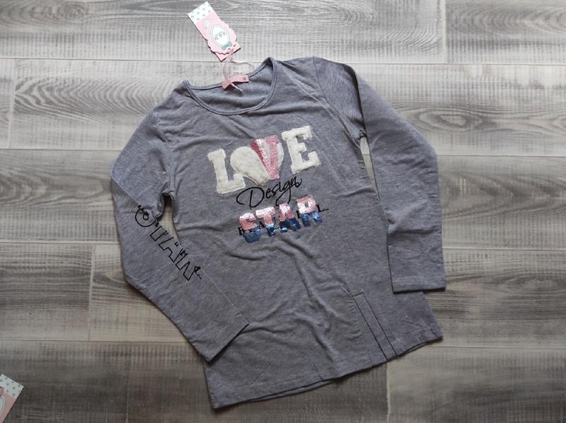 Стильний реглан для дівчинки, прикрашений абстрактним принтом, Виробник Угорщина. 12 - сірий рукав від плеча 50см, ПОГ 36,5 см