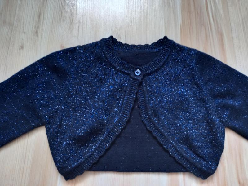 Болеро темно сині з люрекс ниткою і перфорацією бренд nutmeg на вік 1-1,5 г Виміри плечі 21 рукав 29 стан відмінний повернення немає