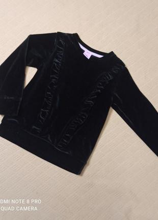 Красивая бархатная кофта на девочку от KIKI& KOKO. Рост 98 см,на 2-3 года.Кофточка тянется, спереди две красивые рюши.Длина 40см, ширина по пройме 29 см, длина рукава от плеча 36 см.Состояние идеальное.