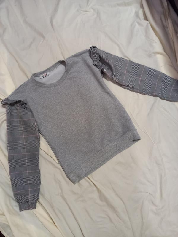 Красивий,стильний світшот ! Довжина - 58см Плечі приспущенны - 51см Рукав від приспущенного плеча 54см Рукав в клітку і знизу на резинці ПОГ - 49см Ширина знизу 42см В реальності виглядає дуже-дуже круто!