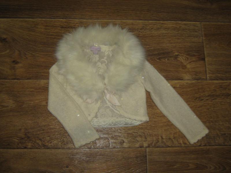 ошатна болерушка, 3-4 роки, довжина-25 см, ширина-24 см, довжина рукава від плеча-32 см від горловини-38 див. Склад: 43% нейлон, 31% мохер, 15% вовна, 11% поліестер. Без нюансів ,без дефектів. Обов'язково дивіться виміри і додаткові фото. Рекомендую дивитися всі оголошення,в наявності багато речей. Вдалих покупочек! )))