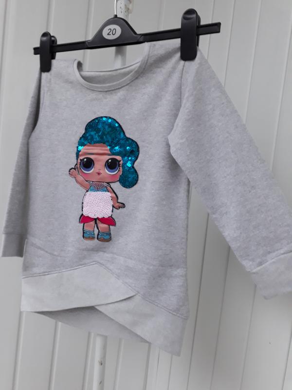 Тепла, легка кофта-туніка із зображенням L.o.l., стан ідеальний, близький до нового, є в двох кольрах - сірий і малиновий. Тканина - турецька двохнитка петля. Ціна за одну, дві будуть за 200 грн.
