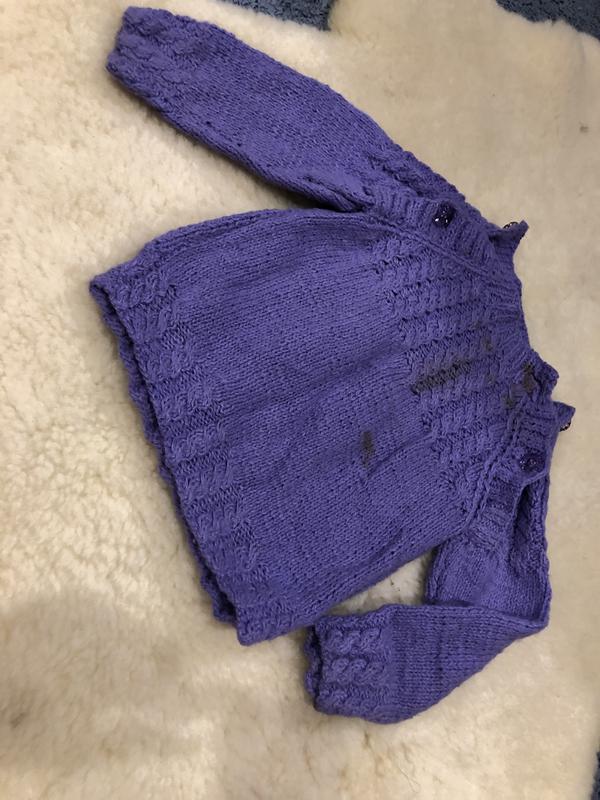 Светр в стані нового , є плями перед продажем спробую вивести якщо виведу він ваш ))) приблизно на 3-4 роки ручна робота пог 32 см, рукав внутрішній шов 24 см довжина 38 см