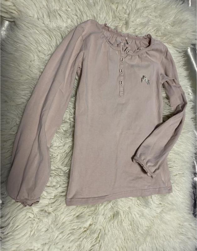 Комір круглий на ньому маленькі рюшки і невеликий ряд гудзиків Рукави довгі Сліди шкарпетки незначні на фото вказано Довжина 45,5 см) Плечі 26,3 см) Пог 30 см) Піт 27,7 см) Знизу 30,5 см) Рукав 42,5 см)