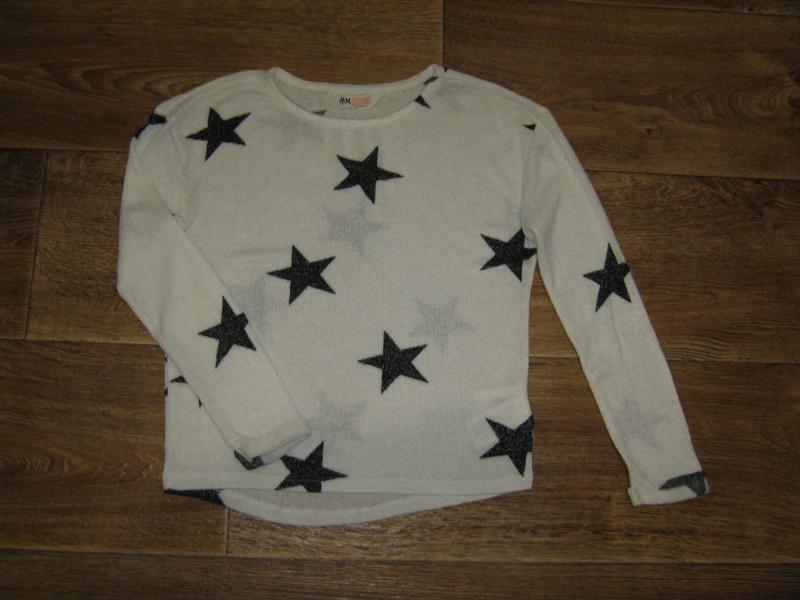 тоненький светр від H&M, 8-10 років, у відмінному стані, довжина попереду-46 см, ззаду-49 см, ширина-37 см, довжина рукава від плеча-42,5 см, від горловини-54,5 див. Склад: 76% віскоза, 22% поліестер, 2% еластан. Обов'язково дивіться виміри і додаткові фото. Рекомендую дивитися всі оголошення,в наявності багато речей. Вдалих покупочек! )))