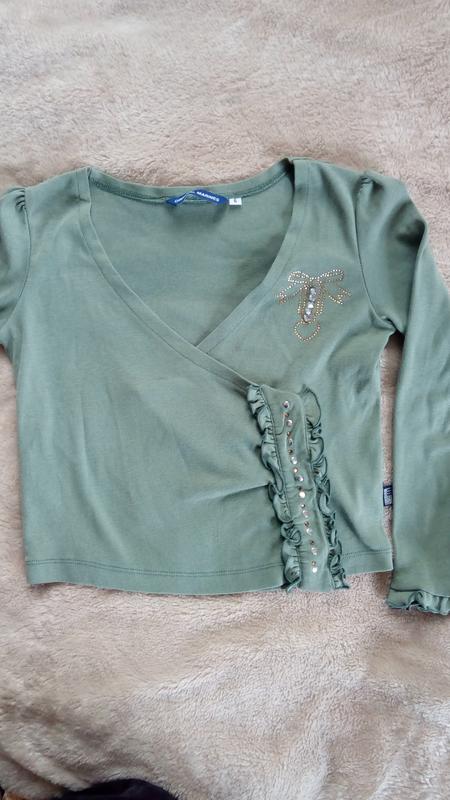 Дуже гарна кофточка, х/б трикотаж, ошатна. Бирка зрізана, але так і не носили, т. к. на мою худишку вона виявилася широкою. Розмір вказаний 6 років, але йде більше