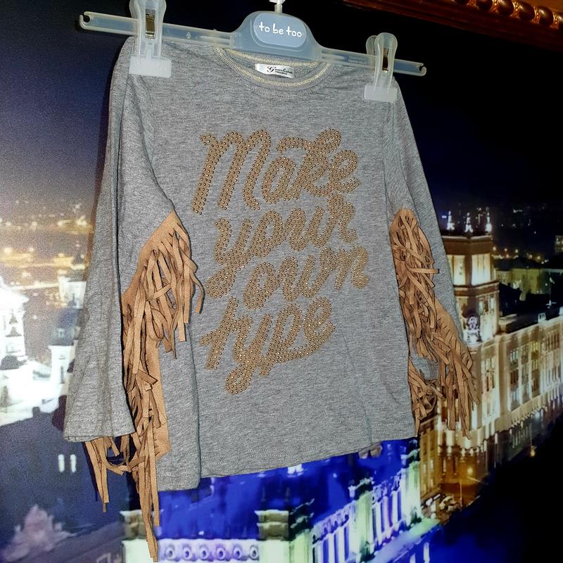 Кофта на девочку Gaialuna , с красивой аппликацией и интересным решением под ручками и бокам украшена замшевой тканью .