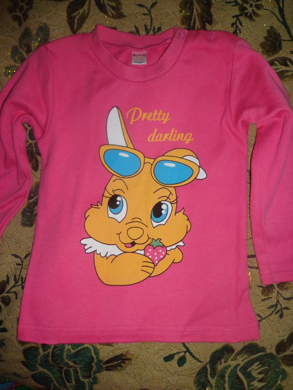 Красивий яскравий джемпер для дівчинки. Горловина застібається на кнопки. Довжина 41 див., ПОГ 31 див., довжина рукава від плеча 34 див.