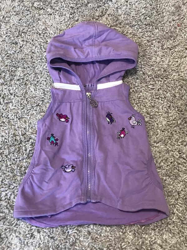 Жилетка літня для дівчинки. Дуже класна. Гарний бузковий колір, з кишеньками капюшоном і вишивкою. Вік 2-3 роки. Стан ідеальне