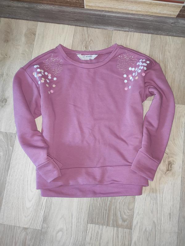 Фирменная кофточка на возраст 7 лет,катон ,плечи спущенные,паетки переливаются хорошо пришиты.В хорошем состоянии бу