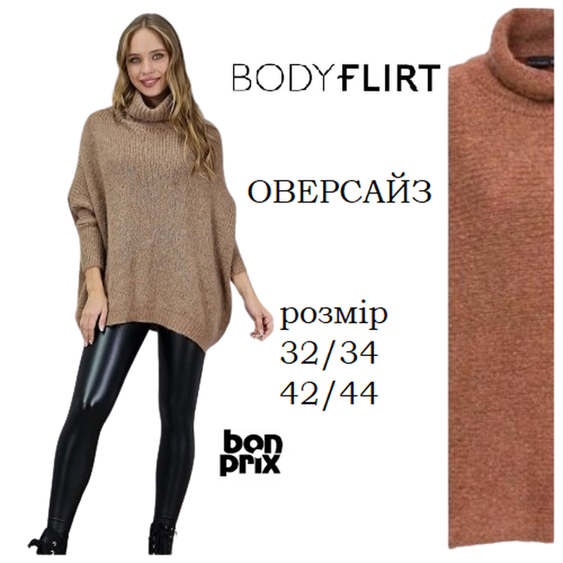 Фірмовий светр від Bodyflirt, стан ідеальний. Рукав 3/4. Колір на фото відрізняється, в реалі яскравіший. Розмір 42-46. По замірам: ширина між пахвами 58 см довжина по спині 60 см
