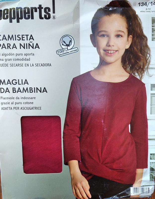 Дуже красивий і яскраві реглан на дівчинку від брендового виробника Pepperts.Колір бордовий.Розмір 134/140./Маломерит десь на 122/128 на 6-8лет. довжина -50см. рукав чверть-32см. дпг.37см.