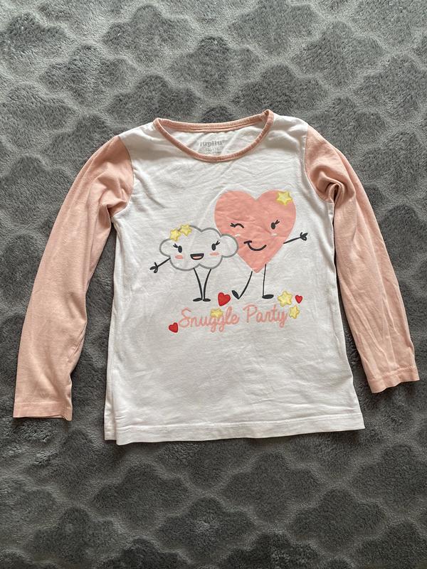 Фото на тілі немає Комір круглий Рукави довгі Попереду малюнок (сердечко і хмаринка) Симпатична кофта для дівчинки Тягуча Щільність середня Підійде на 4-6 років орієнтуйтеся по замірах Сліди шкарпетки місцями незначні плями на фото видно (не критично) По будинку або на дачу носити можна Довжина 43 см) Плечі 25 см, Рукав-40 см) Пог 31,5 см) Піт 30 см) Знизу 34 см)