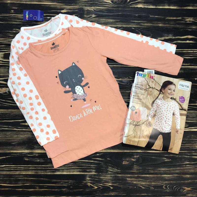 Реглан персикового кольору з котиком Lupilu 110/116, 4-6 л Заміри: рукав + плече / 40+5 см, по 32 см, довжина 47 см. 185 На другому, плямистому, є ледь помітні недоліки-цятки, не критичні. 80 Ціна за обидва.