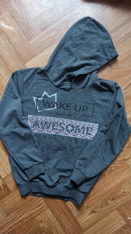 Сірий худі без начосу з принтом в ідеальному стані на ріст 152/158
