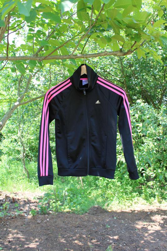 Спортивна кофта фірмова-adidas, виробництво Камбоджа. У відмінному стані! на бірці 11-12р. заміри: грудей 42см довжина рукава від шиї (без ворота) 64см довжина кофти по спині 53см, з воротніком 63див.