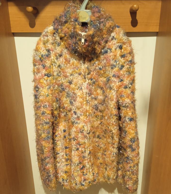 Тепла кофта ручної роботи, дуже товста та м'яка і довга, можна носити навіть замість куртки. Застібка блискавка. Довжина по спинці 58см, ширина по грудях 40 см. Кофта тягнеться. Додаткові заміри за запитом.