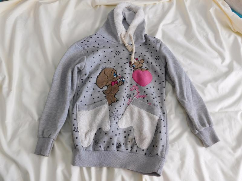 Красиве худі для дівчинки яке підійде в холодну погоду, має красиві кармани-рукавички. Підійде для дівчинки зростом від 150 см.