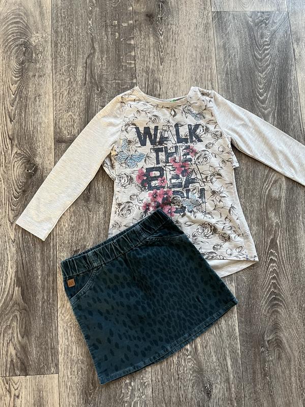 Реглан з цікавою спинкою фірми Cichlid .Тканина натуральна,приємна до тіла. Заміри: 📌довжина-42 см(по спинці 47 см),під руками-39 см, рукав-37 см. Можливий продаж разом із спідничкою