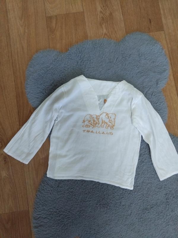 Підійде як і для літнього вечора та і щоб не згоріти на сонці в день, можна використовувати як накидку на купальник. Стан ідеальний, як на фото, без дефектів. Тканина натуральна та тоненька. Малюнок вишивка. Розмір 110-116. Заміри є на фото.