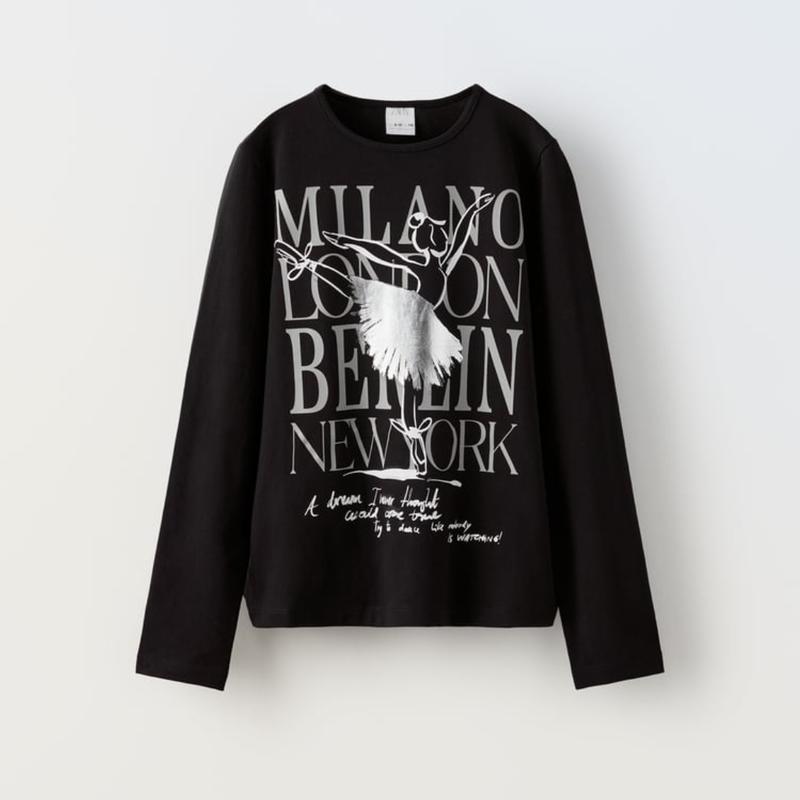 Лонгслів чорного кольору з фольгованим принтом наявності розмір 📌130 8-9 років Ширина між рукавами 36 Довжина по спині 48 Довжина рукава від горловини 53 95%Cotton 5% Elastan