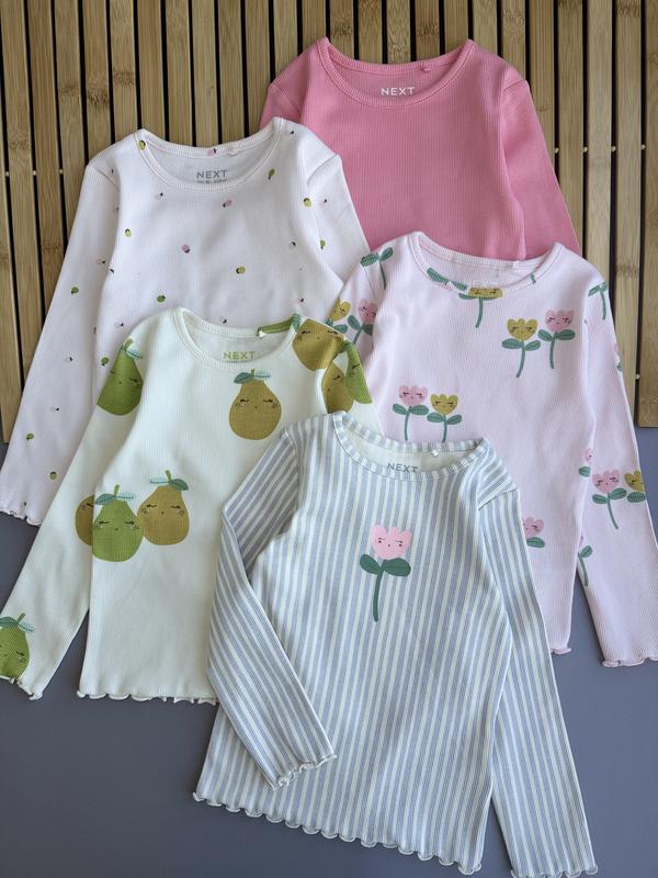 Реглани у квітковий принт у рубчик Розміри 🌾1,5-2 є всі 🌾2-3 є у дрібні фрукти, однотонний, з грушею 🌾3-4 є рожева з тюльпанами 🌾4-5 є смугастий, з грушею і у дрібні фрукти 🌾5-6 є з грушею і однотонний 🏷️450 грн один Заміри 📏1,5-2: рукав 33, довжина 36, ширина 27 📏 2-3: рукав 35, довжина 37, ширина 28 📏3-4: рукав 37, довжина 40, ширина 30 📏4-5: рукав 40, довжина 42, ширина 31 📏5-6: рукав 45, довжина 44, ширина 32