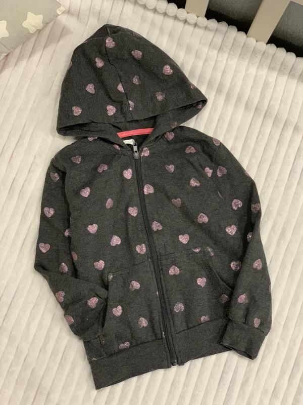 Спортивна кофта для дівчинки темно-сіра з сердечками капюшоном на блискавці худі олімпійка