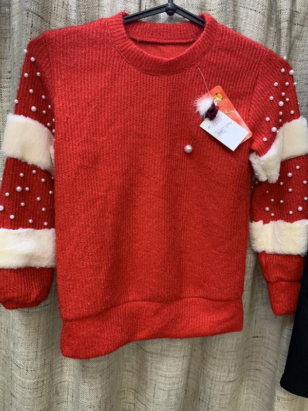 Модная трикотажная красная кофта отделеа искксственным мехом и бусинками.Горловина снимается.Последний размер.Торг