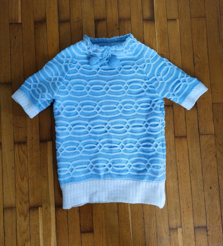 Мила кофточка-футболка з помпонами. Ніжний колір, ідеальний стан. Орієнтовно на 10-12 років, але за потреби зроблю заміри.