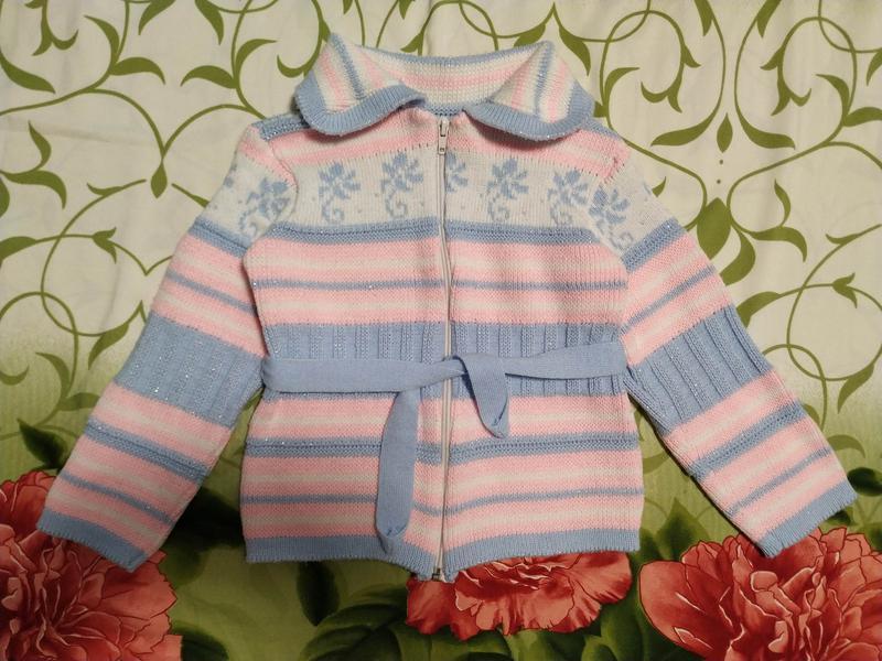 Зимова ,тепла кофта на замку для дівчинки 3-4 роки у відмінному стані. Довжина кофтинки -40 см,рукав від плеча -36 см,плече-8 см,ширина-32 см