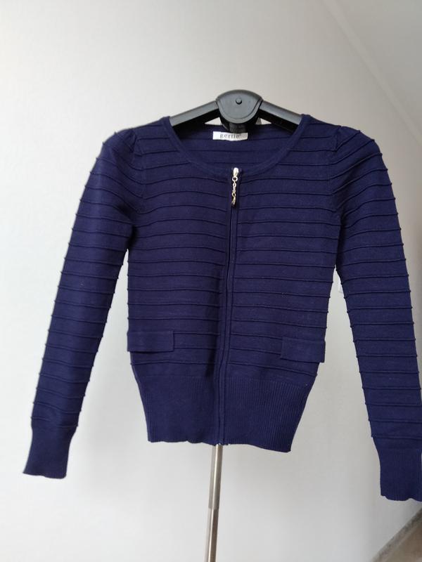 Кофта на молнии. Без дефектов. Цвет темно синий.Очень качественная. Размер 146-152, но смотрите по измерениям. Длина-54см.Длина рукава-57см.,ПОГ-37см.,ПОТ-35см.