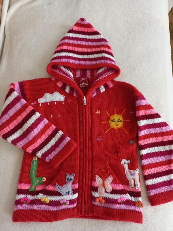 Яскрава та тепла кофта з карманами для дівчинки. Довжина 39см. плечі 37(спущені) , пог 34см, рукав 31см