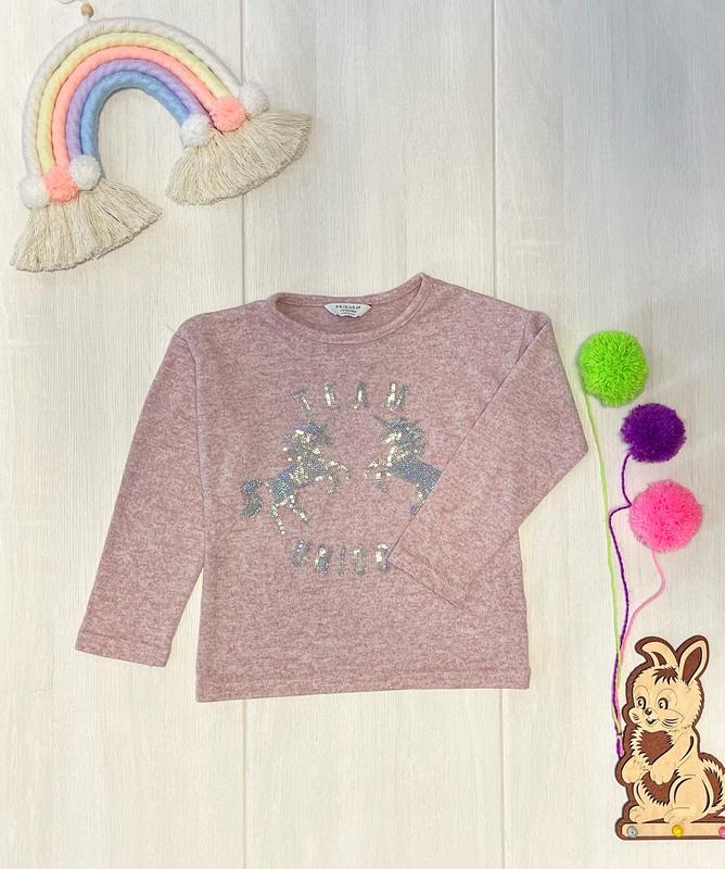 Дуже м’який регланчiк вiд Primark🦄 По бiрцi на 4-5 роки Довжина 41 Ширина 32 Рукав вiд горла 45 Стан iдеал💎 Ціна 180 грн
