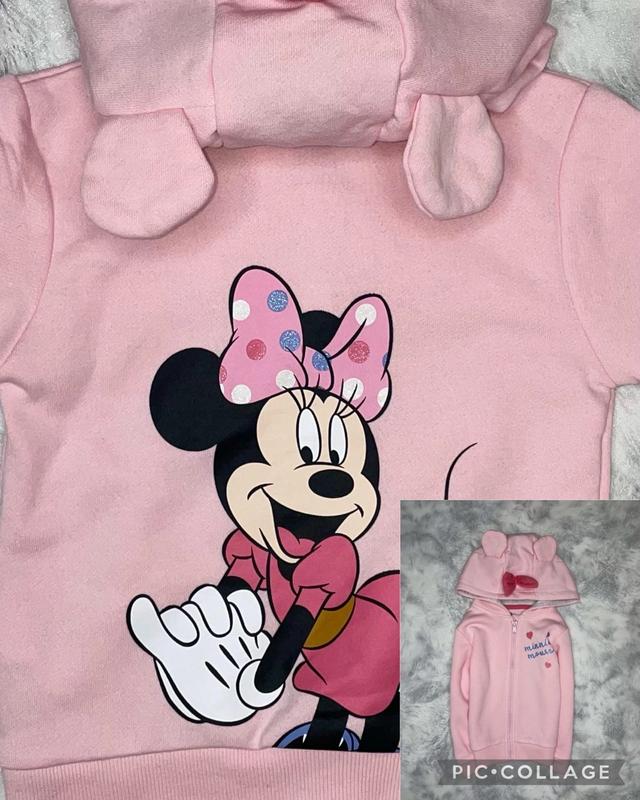 Утеплена кофта з Мінні Маус Усередині на баєчці На капюшоні чудові вушка та бантик На спині великий малюнок Minnie Mouse Стан як новий 🏷Disney 2-3 роки Довжина 37. ПОГ 30. Рукав 33’5