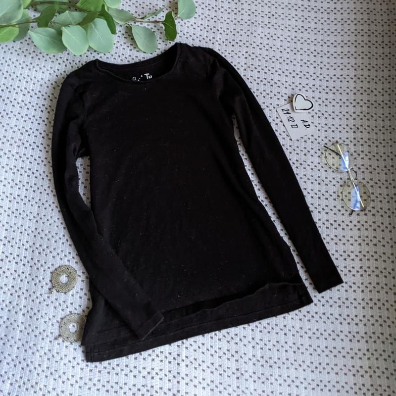 чорний реглан люрексовою ниткою фірми Tu розмір 9 років 134 см під руками 34 тягнеться до 42 довжина рукава 49 довжина по спинці 51ґ хлопок у відмінному стані