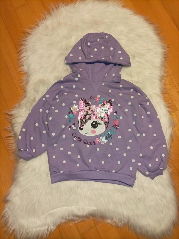 Яскрава кофта для дівчинки. Кофта має начос. Рукави фонаріки. Плечі понижені. Оленятко вишите паєтками. Виглядає дуже мило. Розміри 98, 122 Заміри 98: рукав з плечем 47, груди 39, довжина 42 122: рукав з плечем 54, груди 41, довжина 52 Фірма Infinity Німеччина
