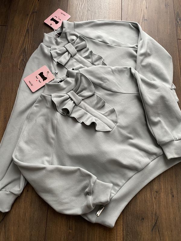 Детская кофточка, свободная, типа «летучая мышь». Размеры 116, 122, 128см. Цвет свет фисташково-серый