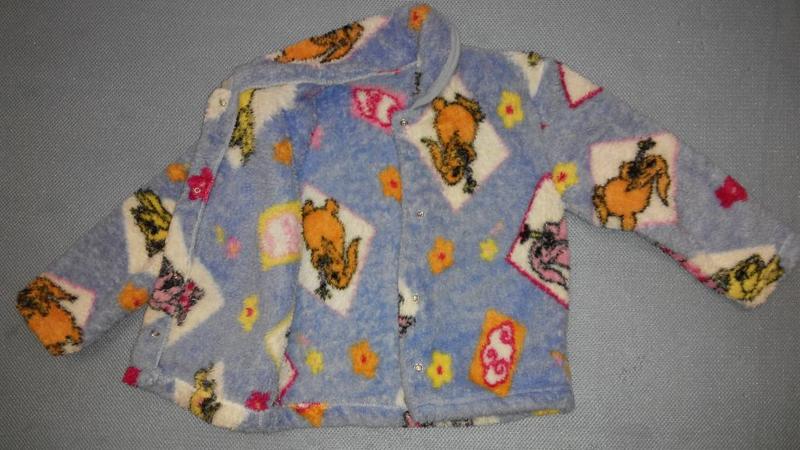 М'яка, тепла кофтинка для хлопчиків і дівчаток. У відмінному стані. Застібається на кнопки Заміри: довжина - 38 см, рукав - 32 см, ширина - 32 см, плечі - 30.5 см Допустима похибка у вимірах 1-2 см
