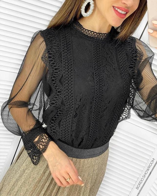 Симпатична ажурна блуза рукавчик євросітка ззаді застібається на гудзик колір чорний підійде і на дорослого 42/46 158-164(6 шт)-довжина 57,пог 42,рукав 58 +-1 см ландш