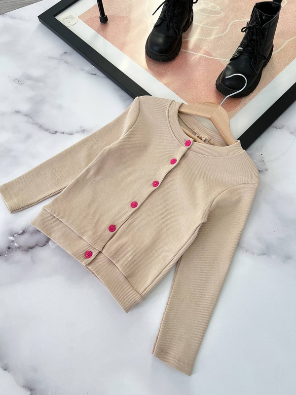 СТИЛЬНА КОФТА ДЛЯ ДІВЧИНКИ -Тканина рубчик, 95% бавовна 5 % еластан добре тягнеться -Виробництво Туреччина -Колір : БЕЖЕВИЙ Розміри: 4-5 років рук 36 см пог 29 см довжина 39 см (6 шт) 5-6 років рук 38 см пог 31 см довжина 41 см (3 шт) 6-7 років рук 40 см пог 32 см довжина 44 см (3 шт) 7-8 років рук 42 см пог 33 см довжина 45 см (8 шт)